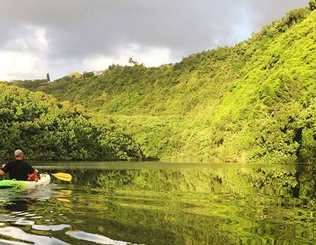 At 20 miles long, the Wailua River is Kauai’s largest and longest river and one of Hawaii’s only navigable rivers. The slow-moving ribbon of water winds through lush landscapes and past classic Hawaiian waterfalls including Opaekaa Falls and Wailua Falls. With its mellow flow, kayaking the Wailua River should be on your must-do in Kauai list! Consider taking a guided kayak tour for a full experience or rent your own kayak or stand up paddleboard.